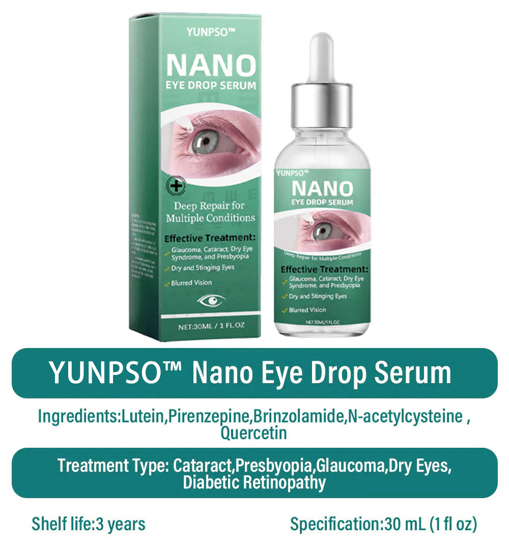 😁After five years of research , Dr. James W. Albrighand the Royal College of Ophthalmologists have jointly launched YUNPSO™, a revolutionary approach to treating age-related eye diseases using advanced nanotechnology and sodium hyaluronate, enriched with herbal extracts . Its nano-drug delivery system precisely targets the eye, significantly improving vision. In a study of 100,000 participants, 95% experienced improved vision, with symptoms of presbyopia, cataracts, and dry eye significantly reduced or eliminated. In some cases, users even reported noticeable improvement in vision. The addition of sodium hyaluronate enhances lubrication and moisturizing, improving drug absorption and therapeutic efficacy while increasing comfort. This innovative technology offers a new solution for eye health in older adults, enhancing comfort and vision quality.